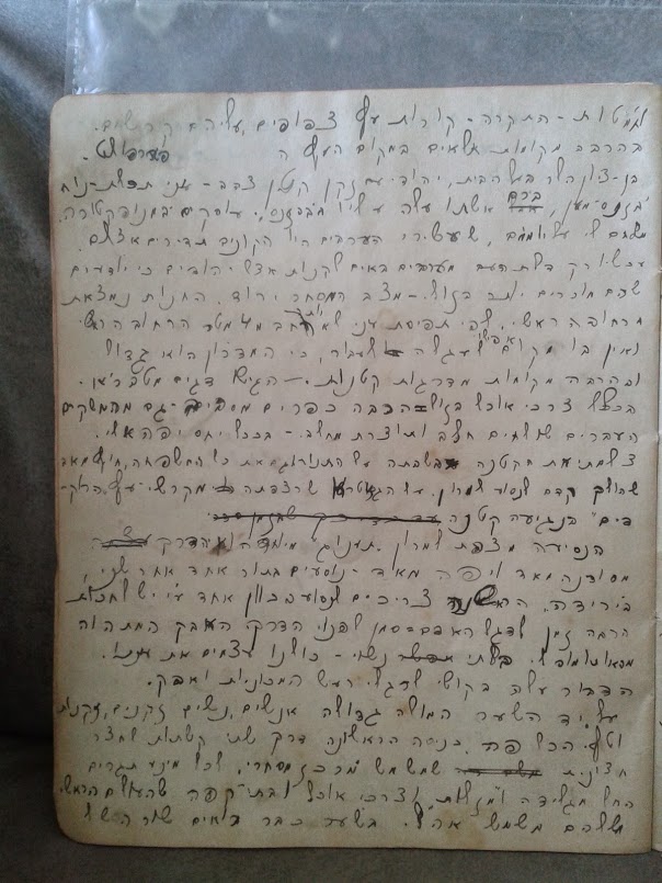 נפגשנו. הוא הביא לי מחברת מתפוררת של פעם, בגוון חום-צהבהב, מלאה בקטעי יומן מתוארכים לשנים 1926 עד 1932… כתב קטן וצפוף, חלקו בעיפרון וחלקו בעט-נובע.