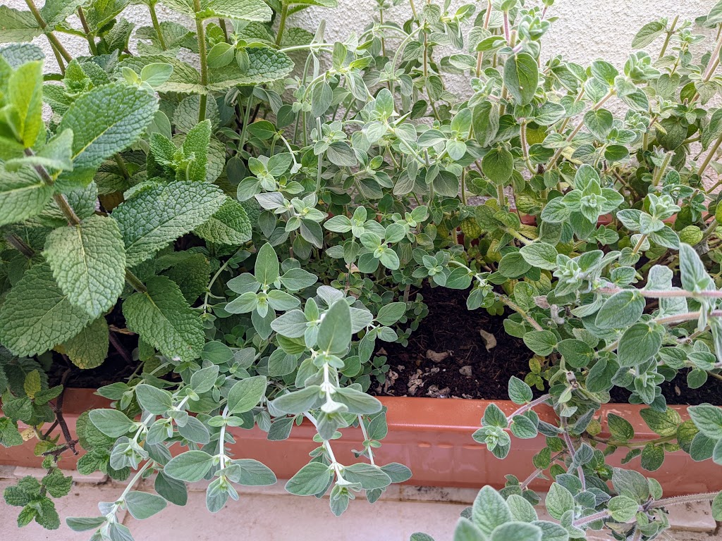 השנה יצרתי לי גינת תבלינים קטנה במרפסת, וכרגע יש באדניות: אורגנו, טימין, נענע, מנטה, לואיזה, פטרוזיליה, בזיליקום, מליסה, זעתר, זוטא, רוזמרין ולימונית! חוץ מזה יש עציץ קטן בסלון, שקיבלתי במתנה ממקום העבודה שלי. נראה לי שזה מספיק בהחלט, ואפשר לעבור את 2023 בלי תוספות בתחום הזה.